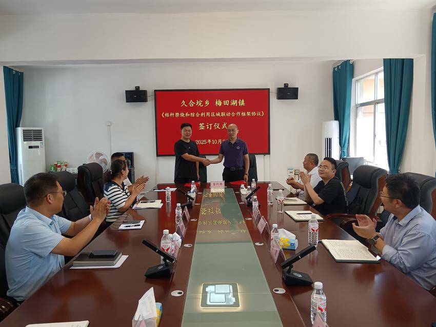 10月7日,两地相关部门负责人在梅田湖镇正式签订《秸秆禁烧和综合利用区域联动合作框架协议》,达成“深化协同治理,推动秸秆禁烧与资源利用一体化发展,减少大气污染,促进农业绿色转型,共建绿色生态屏障”等共识。明确共建秸秆禁烧和综合利用联防联控机制、联合加强秸秆禁烧和综合利用宣传力度、建立秸秆综合利用技术协作机制、建立秸秆禁烧信息共享和应急响应联动机制、共同谋划秸秆禁烧和综合利用相关政策等七项举措,推动秸秆禁烧工作从“单边管”迈向“协同治”。