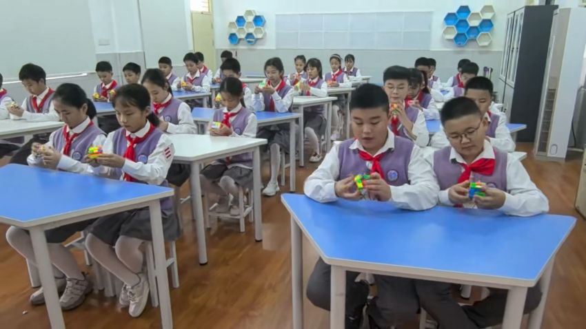 运动会涵盖七巧板拼搭、数字华容道、巧算24点、魔方还原等多样化项目,既考验学生的基础能力,也锻炼其逻辑推理与空间想象能力。市实验小学各班通过层层选拔,推选优秀代表参与年级角逐,形成了“班班参与、人人争先”的活跃氛围。教师们也积极参与其中,与学生同场竞技,展现出教学相长、师生共进的良好风貌。