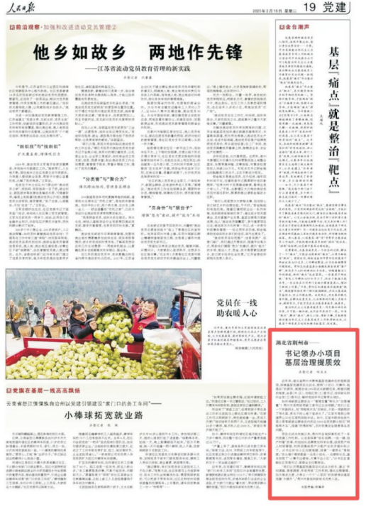 ●2月18日,人民日报刊发文章《书记领办小项目 基层治理提质效》,报道我市基层党建工作。