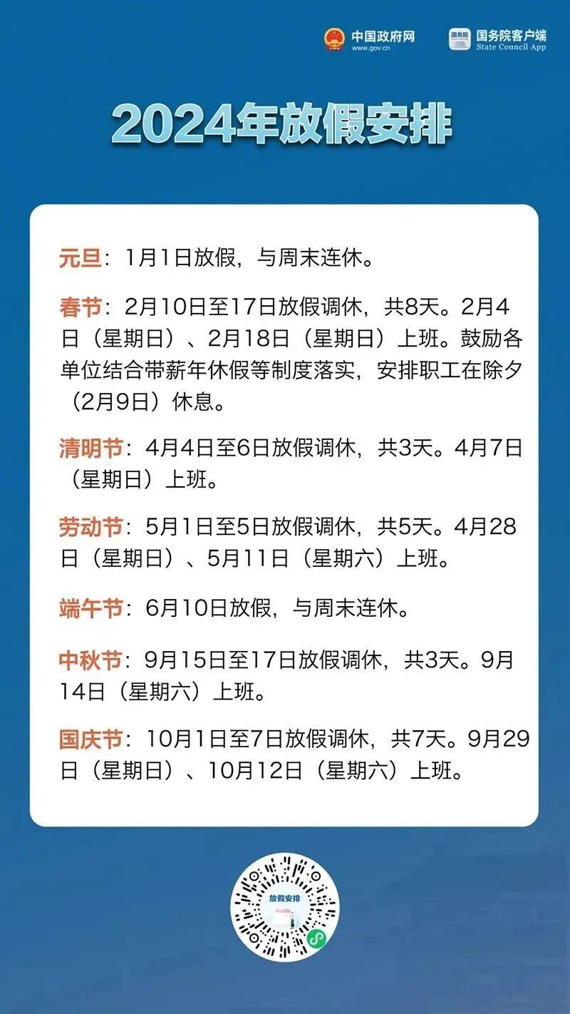 根据国务院办公厅通知精神,现将2024年元旦放假安排通知如下:2023年12月30日(星期六)至2024年1月1日(星期一)放假,共3天。