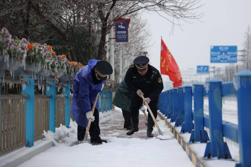 2月3日,冰雪冻雨极端天气发生后,市城管执法局按照市委、市政府安排部署,第一时间全员出动展开扫雪除冰工作。