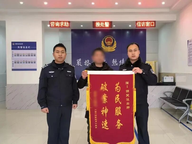 受害人周某兵表示,本来自己都不抱任何希望了,不承想民警不但抓到了犯罪嫌疑人,还为他挽回了经济损失,于是送来锦旗对民警连连道谢,喜悦之情溢于言表。