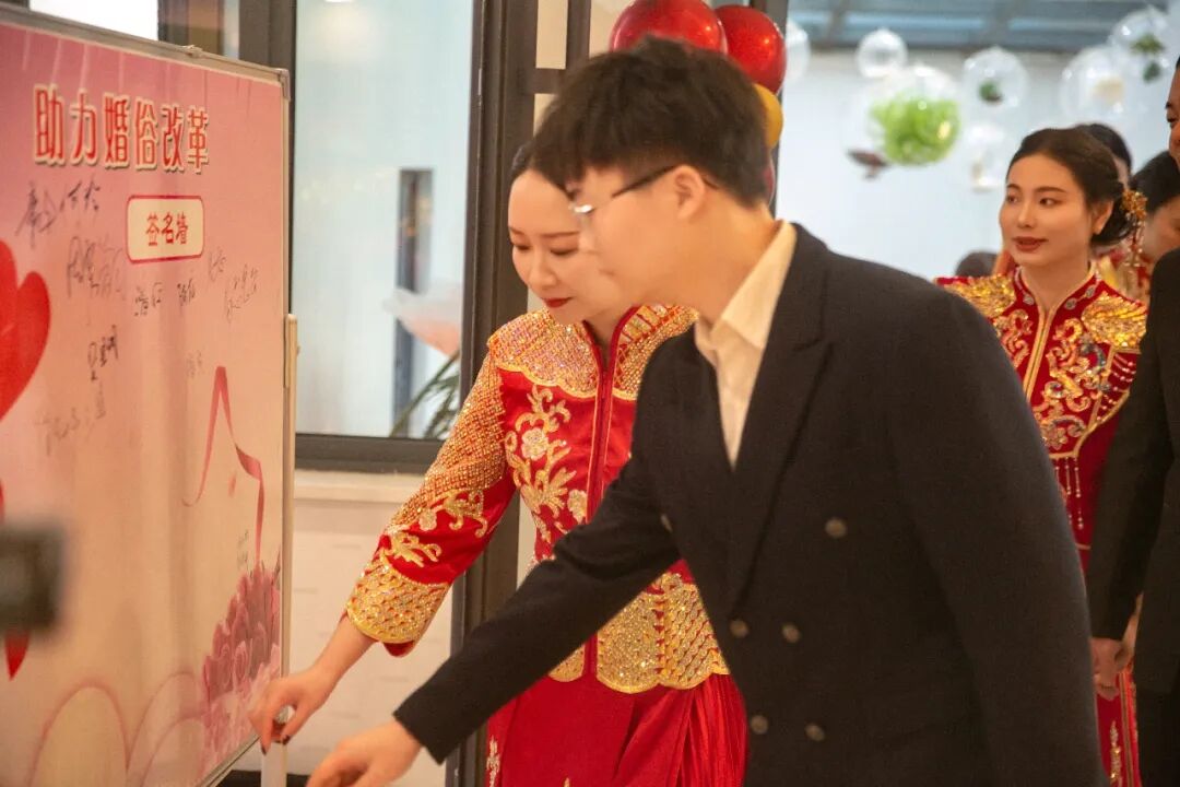 活动组织方表示,9对新人带头倡导喜事新办、喜事简办,以实际行动践行婚俗新风,为广大市民做出了榜样和表率。希望广大青年朋友向他们学习,树立正确的爱情观、婚恋观,积极参与推动形成“爱国爱家、相亲相爱、向上向善、共建共享”的社会主义家庭文明新风尚,勇做婚俗改革的践行者、节俭办婚的推动者、文明风尚的引领者。