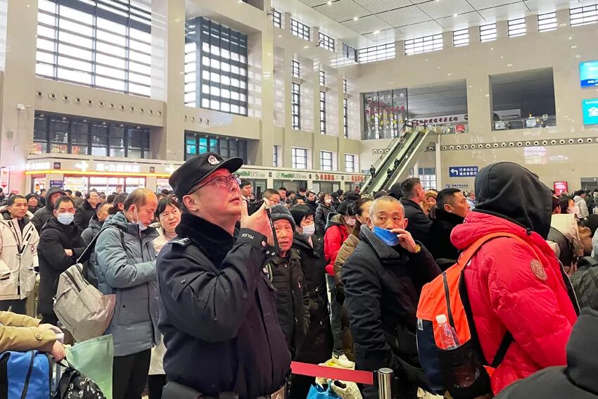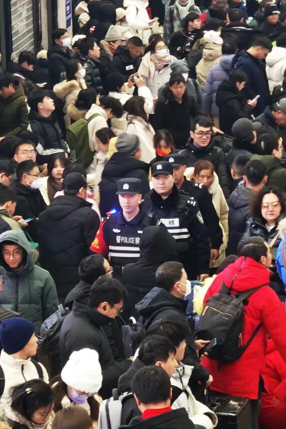 2月16日大年初七,荆州火车站返程客流激增。襄阳铁路公安处荆州站派出所紧盯站区重点部位,科学部署警力,确保治安秩序良好可控,同时提醒乘客关注列车运行变化。