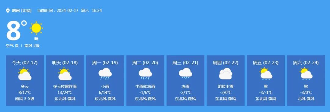 荆州市将先后迎来雷阵雨 中雨