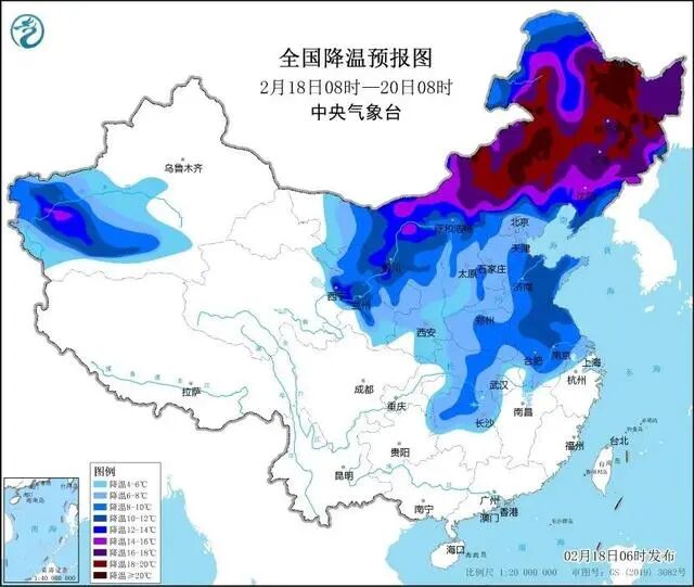 记者18日从中国气象局获悉,中央气象台将寒潮预警提升至橙色,也是寒潮预警的最高等级。18日至22日,中国大部地区自西向东、自北向南先后出现剧烈降温,内蒙古、东北、湖北、湖南等地部分地区累计降温幅度可达20℃以上。 来源:荆州发布