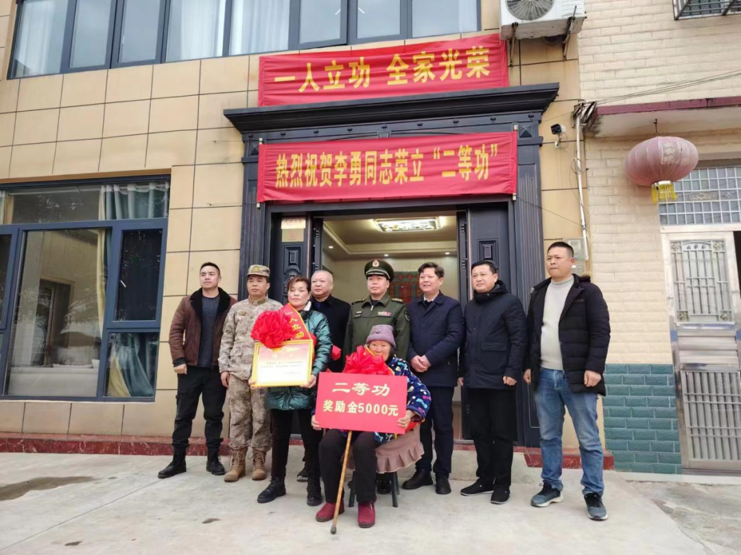 今年三月底,石首市退役军人事务局、市人武部联合乡镇政府、退役军人服务站一行,为辖区内11名立功受奖军人家庭登门送上喜报和慰问金,并为他们披上“一人立功,全家光荣”的红绶带。