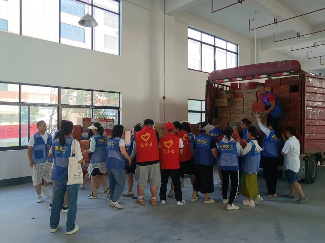 昨日17:57分,救灾物资顺利抵达华容县创新创业园,在当地爱心志愿者的协助下,所有救灾物资被现场工作人员接收。这一刻,大家深深为践行“一方有难、八方支援”的中国精神感到自豪。