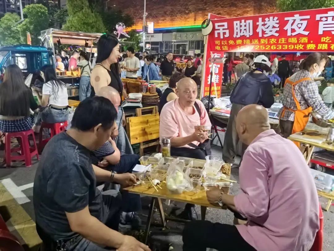顺着夜市街道望去,往来人流如织。情侣们甜蜜地穿梭在各个摊位之间;父母带着孩子,一家人其乐融融;年轻人呼朋唤友,在宵夜摊撸串,尽显闲适与安逸。“这里人多、热闹,氛围好,结束一天工作后来逛逛,可以去‘班味’。”正在逛夜市的市民徐侨说,夜市从“网红桥”搬到才知广场旁后,变得更有城市气息了。