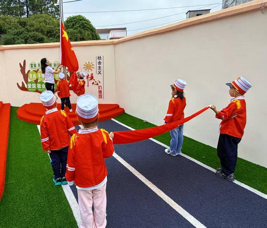 活动伊始,庄严的升旗仪式为整场活动奠定了肃穆而热烈的基调。伴随着雄壮的《义勇军进行曲》,五星红旗冉冉升起,全体师幼肃立行注目礼,浓厚的爱国情感在现场每个人心中激荡。