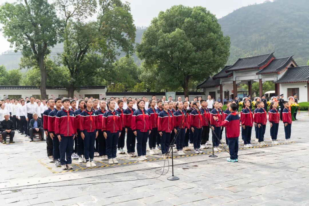 伴随着庄严高亢的旋律,全体人员齐唱《中华人民共和国国歌》。国歌唱毕,全场肃立,全体人员向为中国人民解放事业和社会主义建设事业英勇献身的革命烈士默哀一分钟。默哀毕,少先队员们献唱《我们是共产主义接班人》,并齐致少年先锋队队礼。