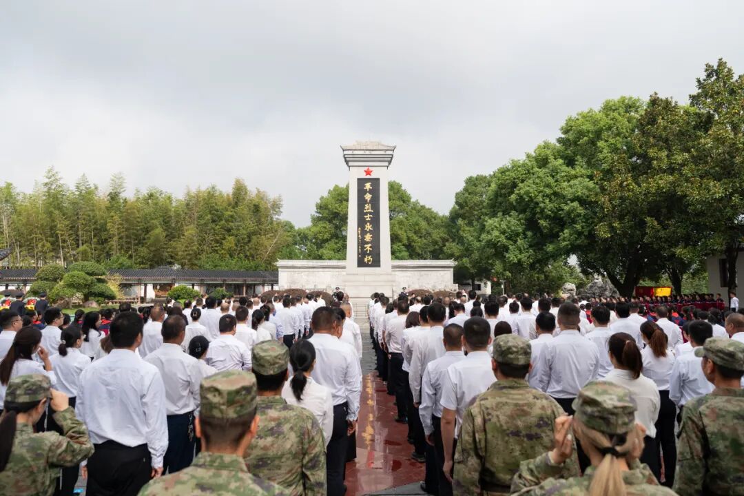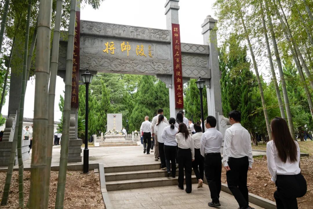 在深情的《献花曲》中,王敏、洪云锋、程鹏、姚周岸上前整理花篮缎带,并带领全体人员上前瞻仰纪念碑,追忆革命烈士的光辉事迹,表达对革命先烈的深切缅怀。