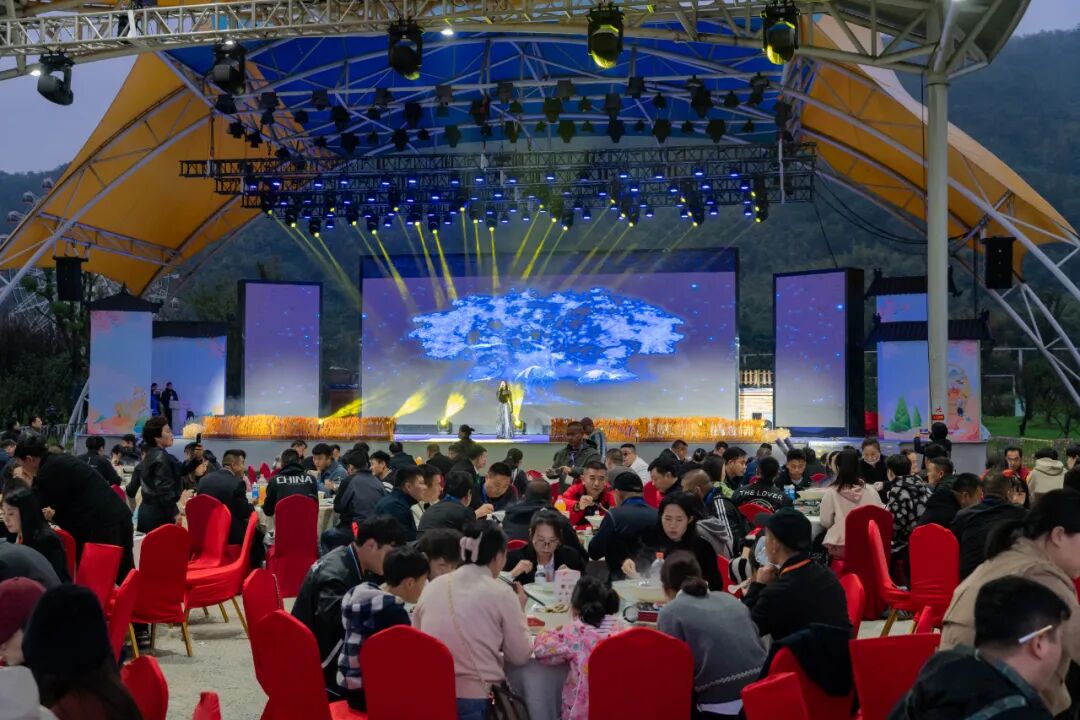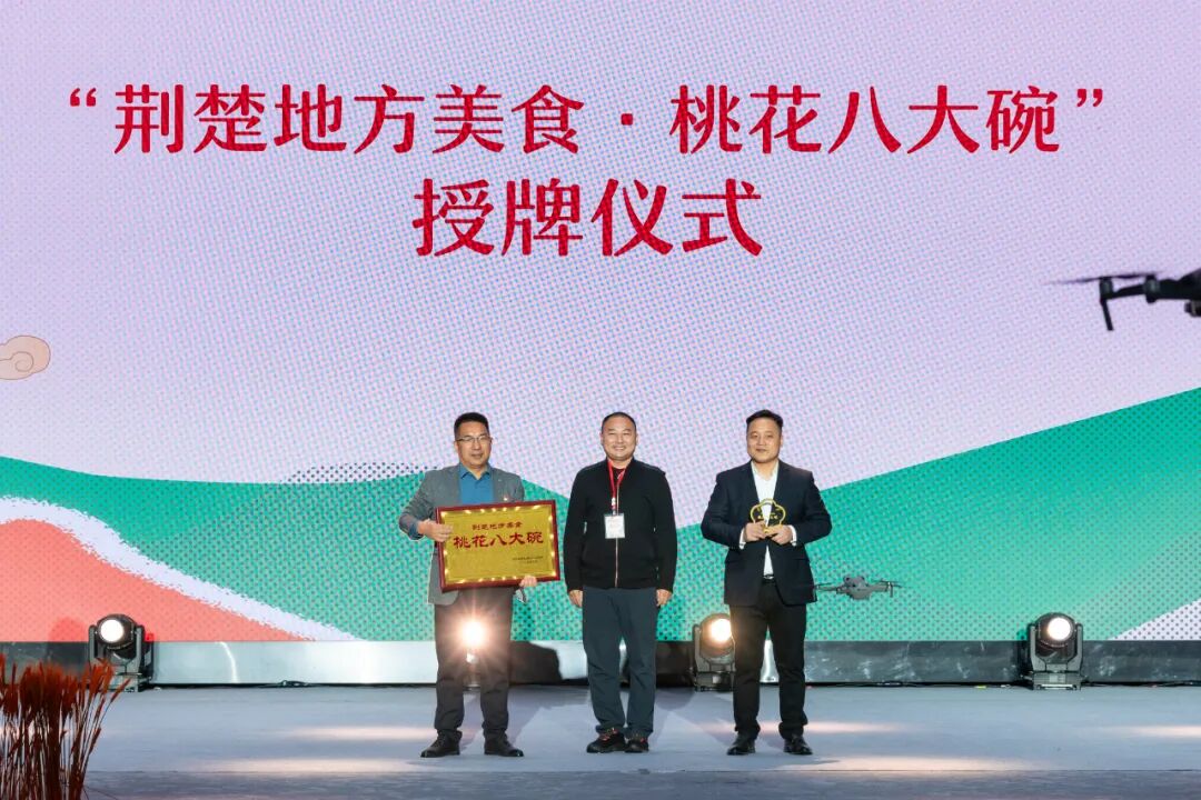 授牌环节中,“荆楚地方美食桃花八大碗”牌匾正式授予桃花山镇旅游餐饮协会,标志着该美食品牌迈入标准化、品牌化发展的新阶段。随着“桃花山美食打卡地图”在现场点亮,嘉宾与游客比邻而坐,共品乡味。