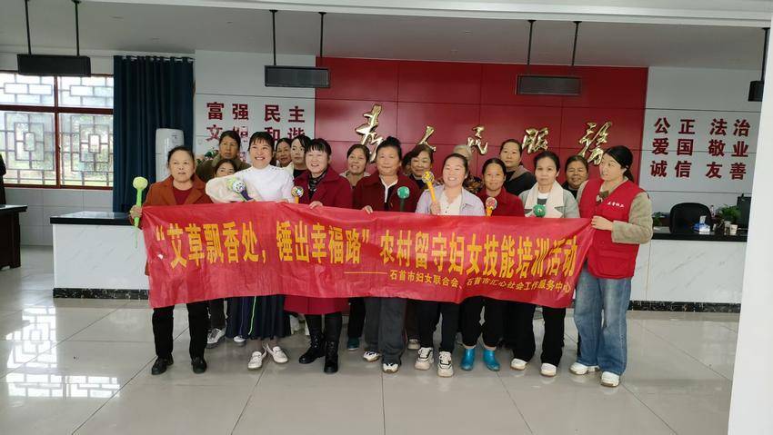 10月20日,石首市妇女联合会、石首市汇心社会工作服务中心联合在天鹅洲生态旅游经济开发区沙滩子社区开展“艾草飘香处,锤出幸福路”农村留守妇女技能培训活动。