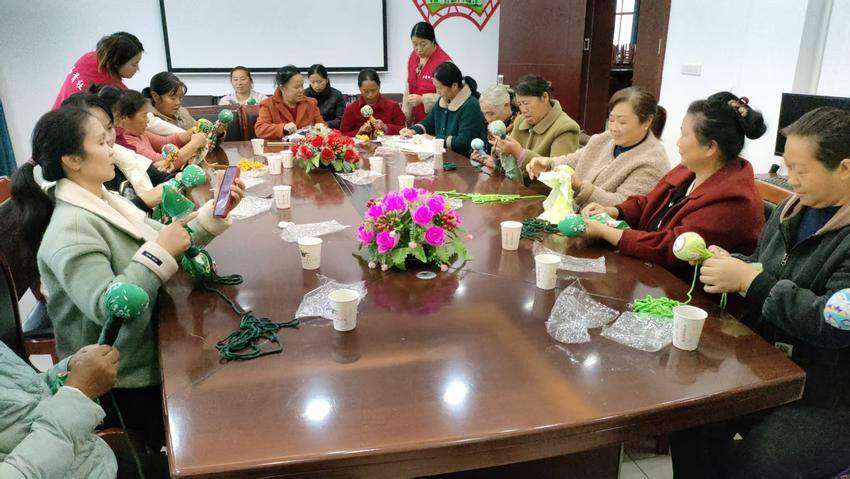 活动中,工作人员详细讲解艾草养生锤的制作方法,妇女们认真聆听、积极动手,从生疏到熟练,一步步完成属于自己的艾草手工作品。大家相互交流技巧,互帮互助,现场欢声笑语不断。