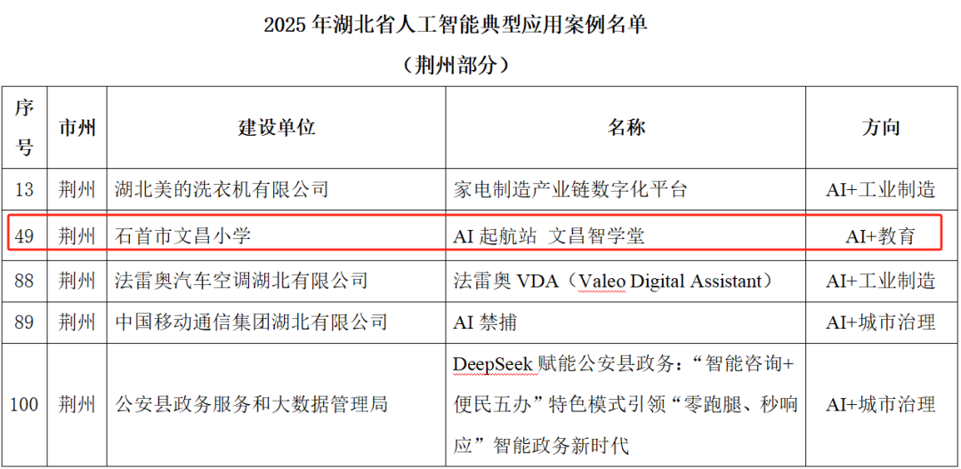 石首市文昌小学入选