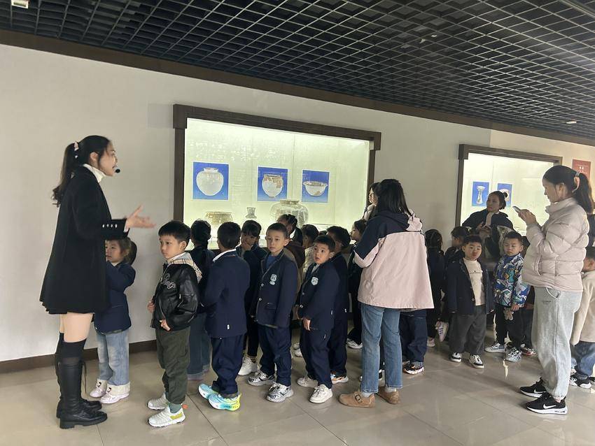 活动中,孩子们在讲解员的引导下有序参观主题展厅。陈列的一件件珍贵文物承载着历史的记忆,讲解员以贴近幼儿理解的语言,生动讲述文物背后的故事,孩子们凝神聆听,不时发出惊叹,在细致观察中感受中华文明的深厚底蕴与先民智慧。