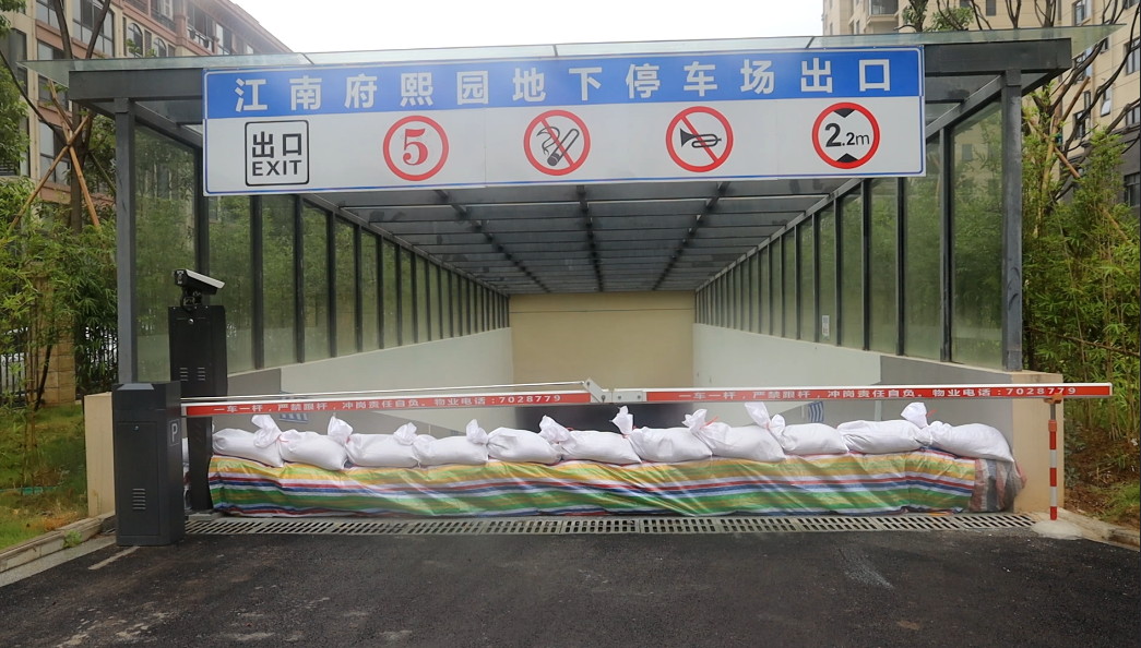 在市城投公司负责管理的车禄新居、南岳新村、绣林新园等三个还建房小区,记者看到地下停车场已经封闭,工作人员组织物业公司员工对地下停车场入口的拦水坝进行加固。