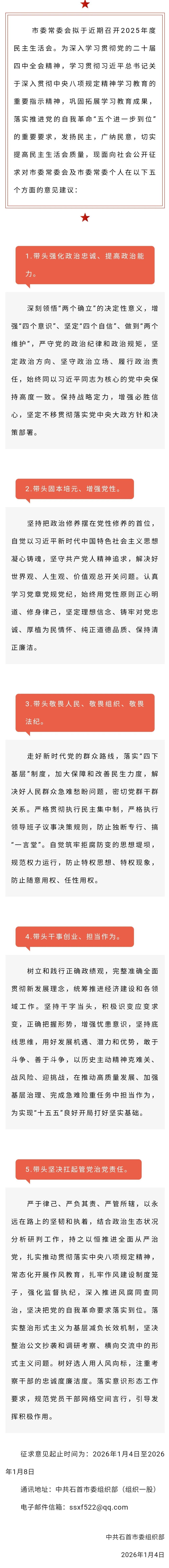 市委常委会2025年度民主生活会,邀请您提出宝贵意见建议