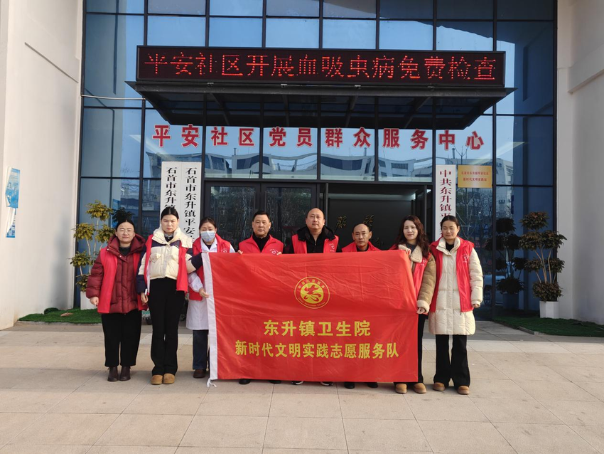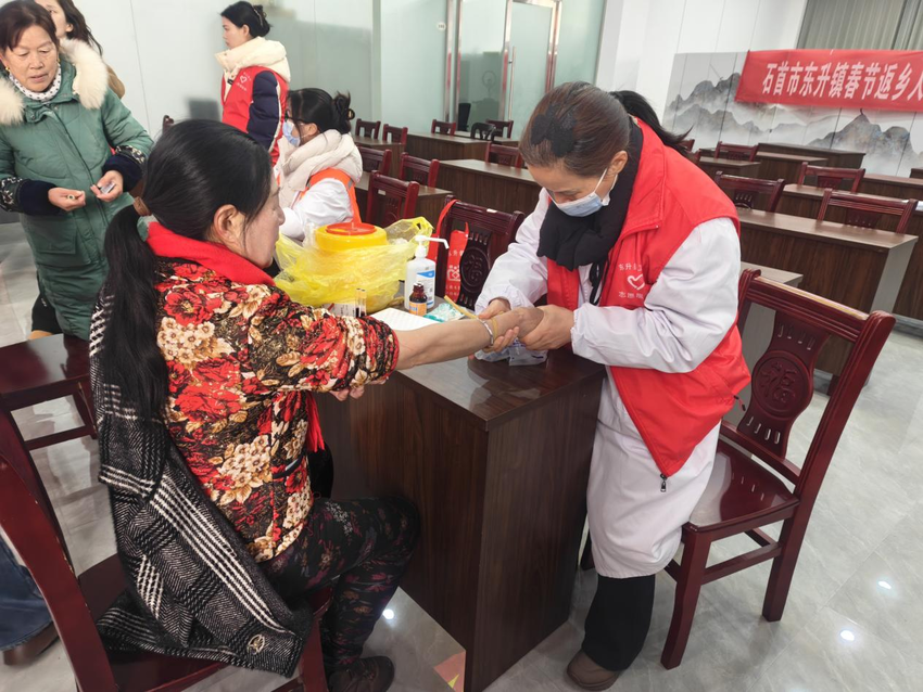 1月28日,石首市东升镇卫生院志愿服务队走进东升镇平安社区,开展血吸虫病免费检查志愿服务活动,为社区居民的健康保驾护航。