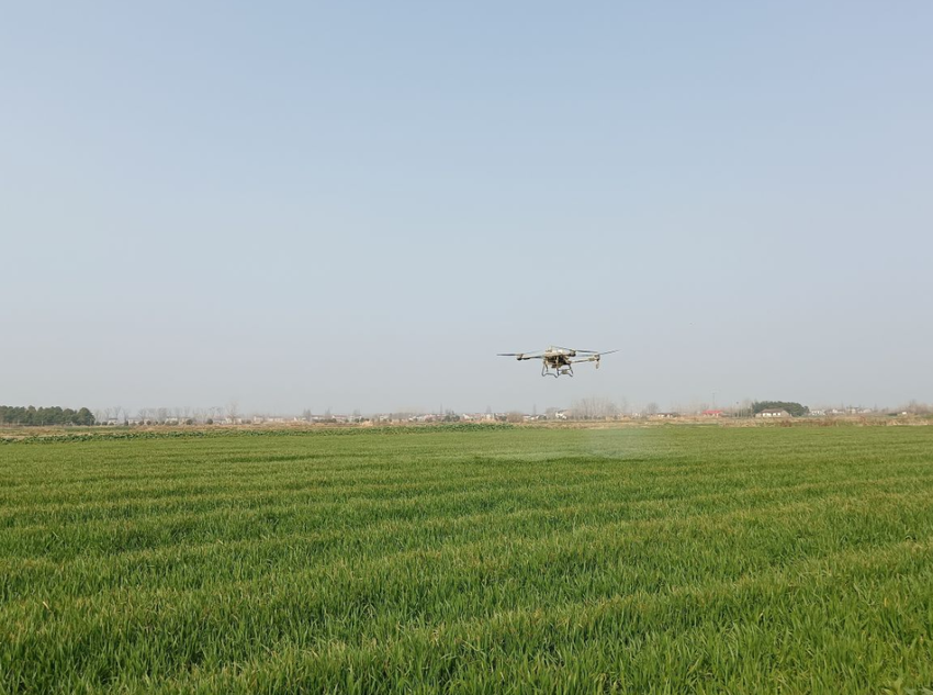 在茅草街村一组的麦田里,工作人员在完成无人机安全检测、防治药剂配兑及作业航线规划等前期准备工作后,两架植保无人机依次升空,按照预设航线低空飞行、精准喷洒。此次飞防作业覆盖95亩小麦地,通过喷施防虫药剂+叶面肥的方式,既有效遏制蚜虫蔓延,又助力受冻小麦快速返青恢复长势。