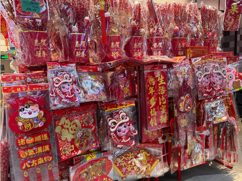 与经典年饰相呼应,今年马年主题新品层出不穷。这些挂饰形态千差万别,材质丰富多样:既有适合悬挂在门楣或车内的卡通小马挂饰,也有置于案头、寓意“马到成功”的精美摆件,还有深受孩子们喜爱的毛绒小马玩具。这些蕴含马年元素的春节饰品,无一不为传统的年货市场增添了活泼灵动的生肖气息。