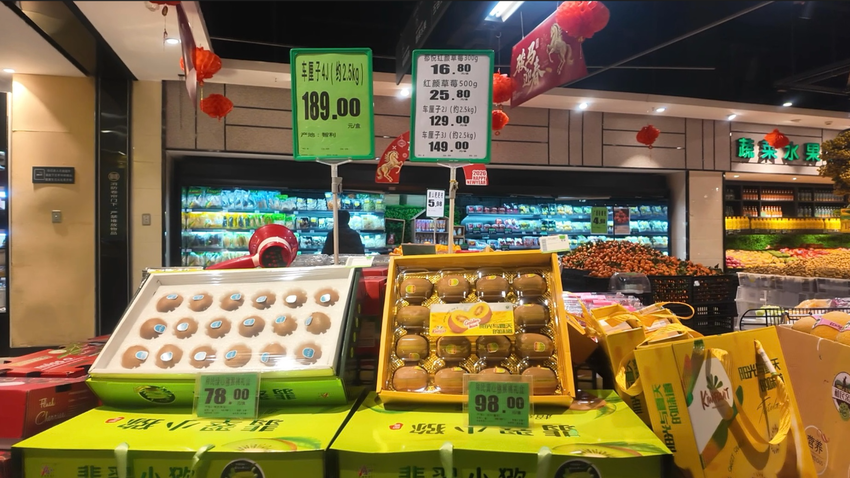 笔者走访发现,各主要销售点均设置了年货水果专区,红火喜庆的装饰与缤纷多彩的果品相映成趣,节日气氛浓厚。货架上,砂糖橘、沃柑、苹果、香梨等传统节庆水果储备丰富;草莓、车厘子等时令鲜果色泽诱人,备受消费者喜爱;榴莲、芒果、牛油果等特色水果也种类齐全,充分满足了市民多样化、品质化的消费需求。