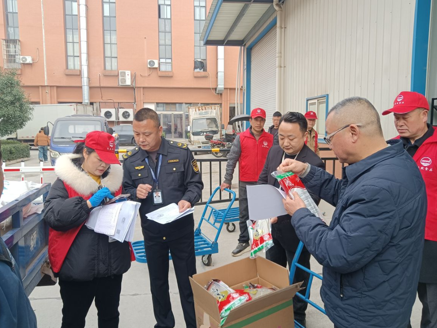 在荆州市滔然食品有限公司食材验收存放区,检查组现场对即将配送到学校的各类食材进行“体检”。从预包装食品的资质证照、进货票据到检验检测报告,执法人员逐一核对、仔细查验,确保食材来源可溯、质量可控。并要求企业常态化开展自检自查,坚决守住食品安全底线,杜绝不合格食材流入校园。