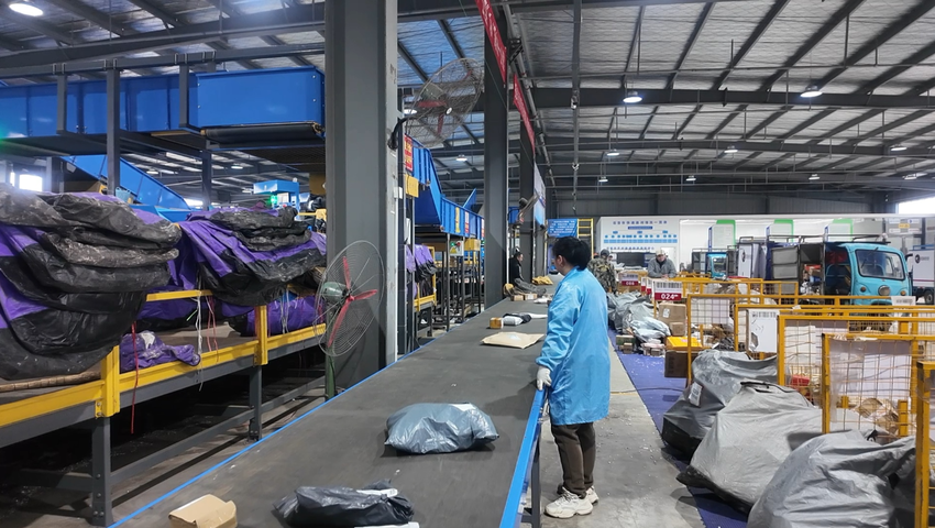 笔者走进石首市寄递物流共配中心看到,现场一派繁忙而有序的景象:自动化分拣设备高速运转,传送带上,装满礼品、特产、衣物等年货的包裹快速流转、精准归类。分拣员们仔细核对每一件包裹的收件信息,熟练对应至片区网格,装车发运工作衔接紧密、有条不紊,确保每一份承载温情与惦念的年货都能准时抵达群众手中。