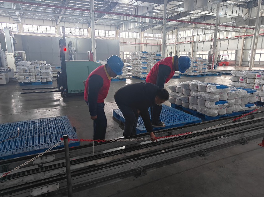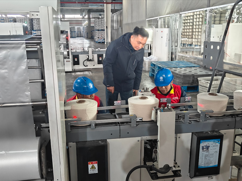 在湖北德永盛纺织有限公司智能自动打包车间,队员们手持测温仪、验电笔,对生产线配电柜、线路接口、传输带等关键部位进行细致“体检”,重点排查节后设备隐患,杜绝带“病”运行。该车间四条生产线复工后,每日打包量可达30吨,对供电可靠性要求极高。