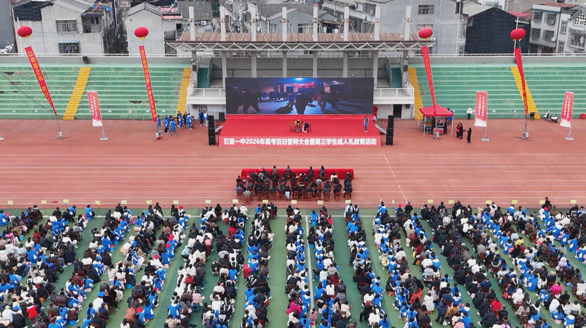 2月27日,石首一中校园里誓言铿锵、热血沸腾。2026届高考百日誓师大会暨高三学生成人礼仪式隆重举行。在距离高考最后一百天的特殊时刻,全体高三学子在师长和父母的共同见证下,以青春之名,赴梦想之约。