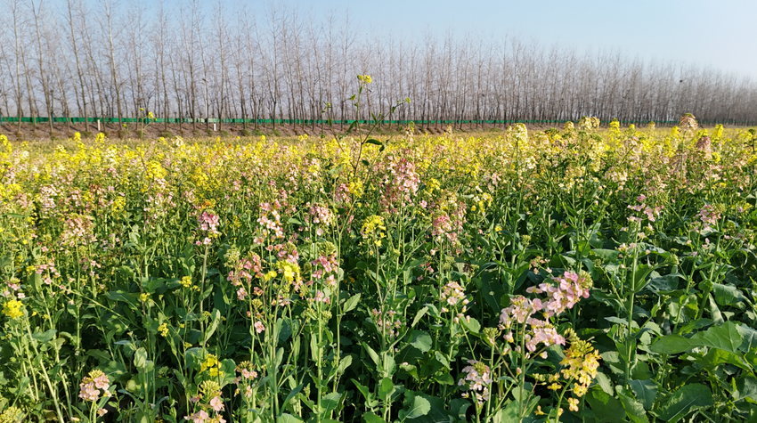 粉、紫、白、黄等各色油菜花层层叠叠,与蓝天碧水相映成画。游客们漫步田埂、打卡拍照,尽享春日美景。不少游客来自石首城区及监利、公安、江陵等地,大家纷纷表示,彩色油菜花层次丰富、视觉震撼。