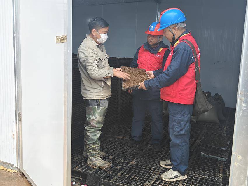 在该镇长安村,占地两千多平方米的智能育秧基地单季可满足3000亩稻田用苗需求,搭配原有钢架育秧大棚,可共同为长安村及周边7000多亩农田提供优质秧苗。眼下,育秧车间内,工人们正操作播种流水线铺设育苗底土,依次完成施水、撒种、覆土等工序,随后将秧盘集中送往暗化室进行快速催芽。服务队随即来到育秧基地现场,检查配电箱、调试育苗设备,并叮嘱合作社负责人加强安全用电管理,全力为春耕育秧生产保驾护航。