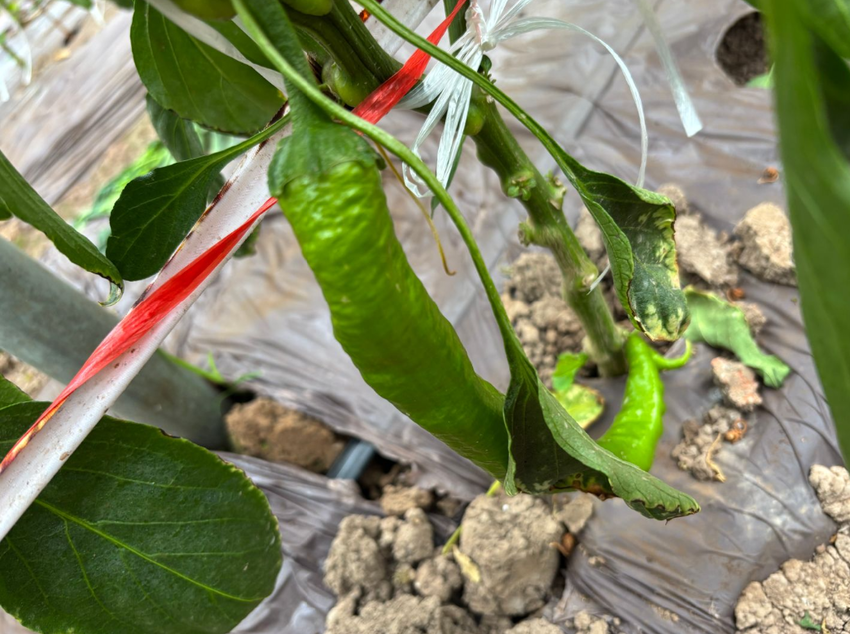 走进农场大棚,放眼望去,一排排辣椒植株挺拔整齐,翠绿的叶片层层叠叠,生机勃勃。叶片间,修长的螺丝椒错落有致地垂挂枝头,独特的螺旋身形在阳光下格外喜人,宛如一串串碧绿的玉坠。果实表皮光滑透亮,肉厚饱满,色泽翠绿鲜亮,长势十分喜人。据农场负责人介绍,该品种名为“旋优”,具有皮薄肉厚、辣味适中的特点,口感爽脆,品质优良,深受市场青睐和消费者喜爱。