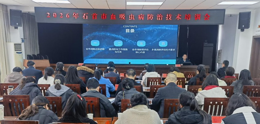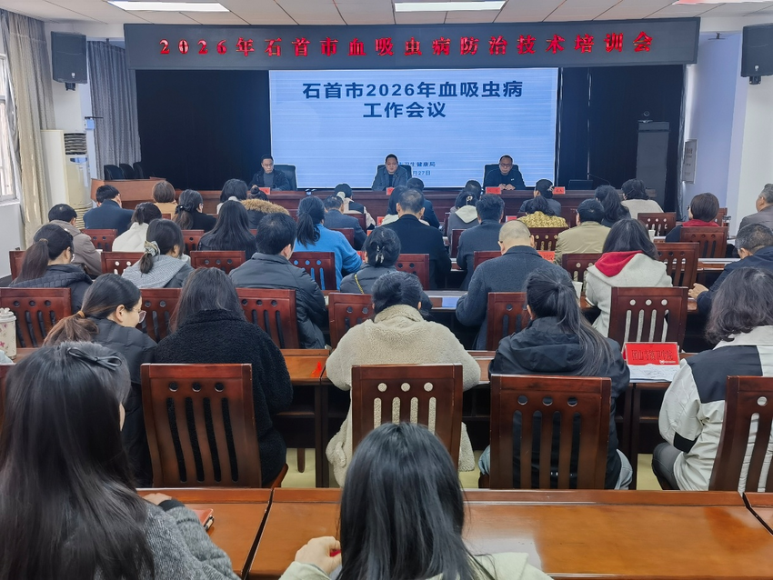 近日,石首市成功举办2026年血吸虫病防治技术培训班,市人民医院、市中医医院、市妇幼保健院及各乡镇办区卫生院分管血防工作的负责人、资料员、检验员共60余人参加培训。本次培训旨在巩固血吸虫病防治成果,进一步推进全市血吸虫病消除工作进程,提升基层防控能力。