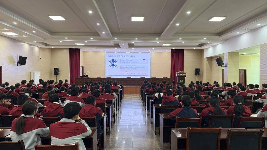 在校报告厅,市人民检察院相关同志以真实案例为切入点,结合短视频展示和互动提问,围绕未成年人常见违法犯罪类型、法律后果及预防措施等内容,为在场学生上了一堂生动深刻的法治教育课。讲座现场气氛热烈,学生们积极参与互动,在潜移默化中增强了尊法、学法、守法、用法的意识。
