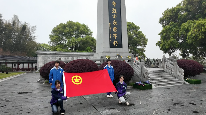 活动中,党员与团员代表分别献词并带领重温誓词,学校领导殷切寄语。铮铮誓言响彻陵园,彰显了赓续红色血脉的坚定信念。全体人员还瞻仰了革命烈士纪念碑和将军陵。
