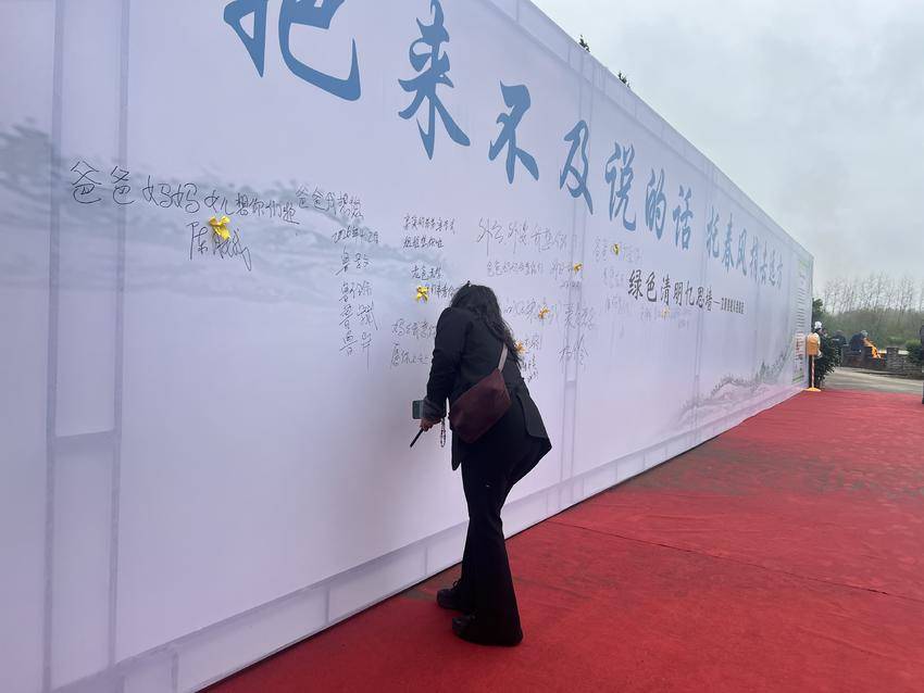 同时,现场还设置了忆思墙和“时空信箱”两大特色环节。追思墙上,不少群众驻足留言,用笔写下对逝去亲人的思念。“时空信箱”前,市民将心底的思念与期盼写成信件投入信箱,化作对故人最温情的追忆。
