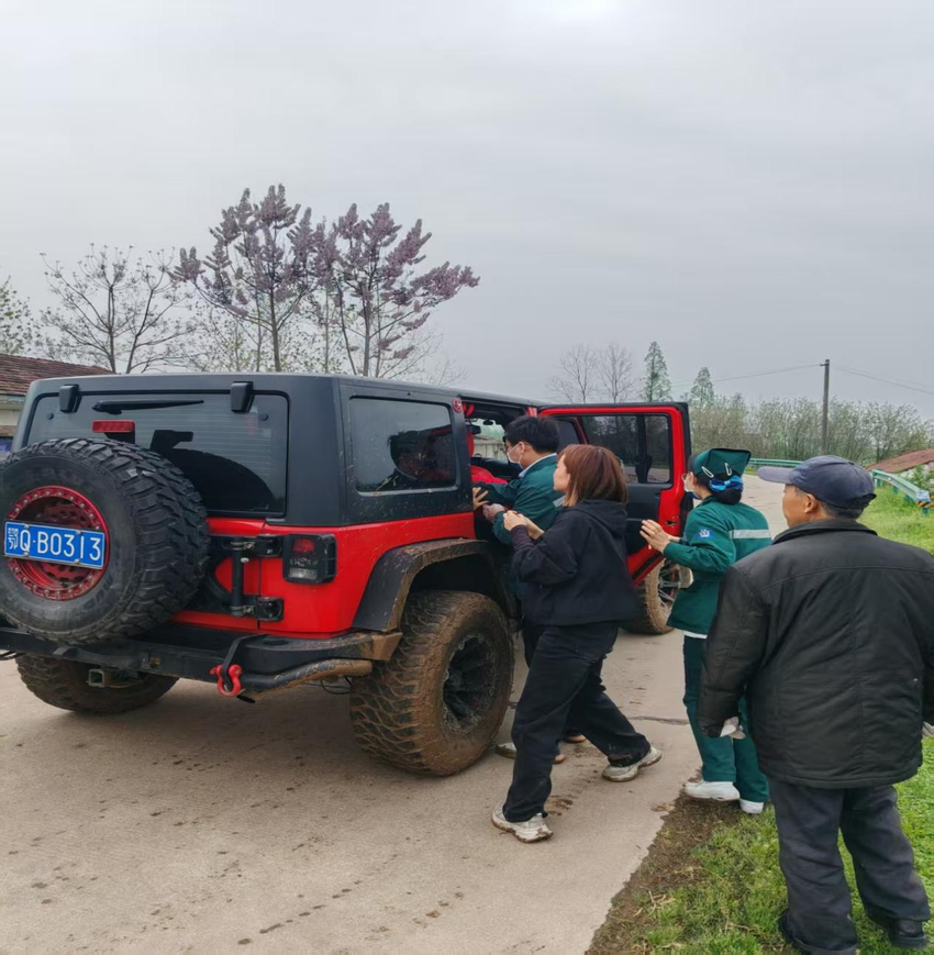 警情就是命令。仅56秒后,16时23分32秒,石首市人民医院急救站的急救医生李应钦、护士李轩和司机夏磊迅速集结完毕,救护车呼啸着冲出医院。由于报警人仅能提供大致方位,无法精准定位,医生李应钦果断决定先赶赴现场,途中持续联系确认位置。然而,持续的阴雨让乡间小路变得泥泞难行,救护车在颠簸中艰难前行,最终被一条被雨水泡得松软深陷的土路彻底挡住了去路,车轮空转、泥浆四溅,无法再前进分毫。