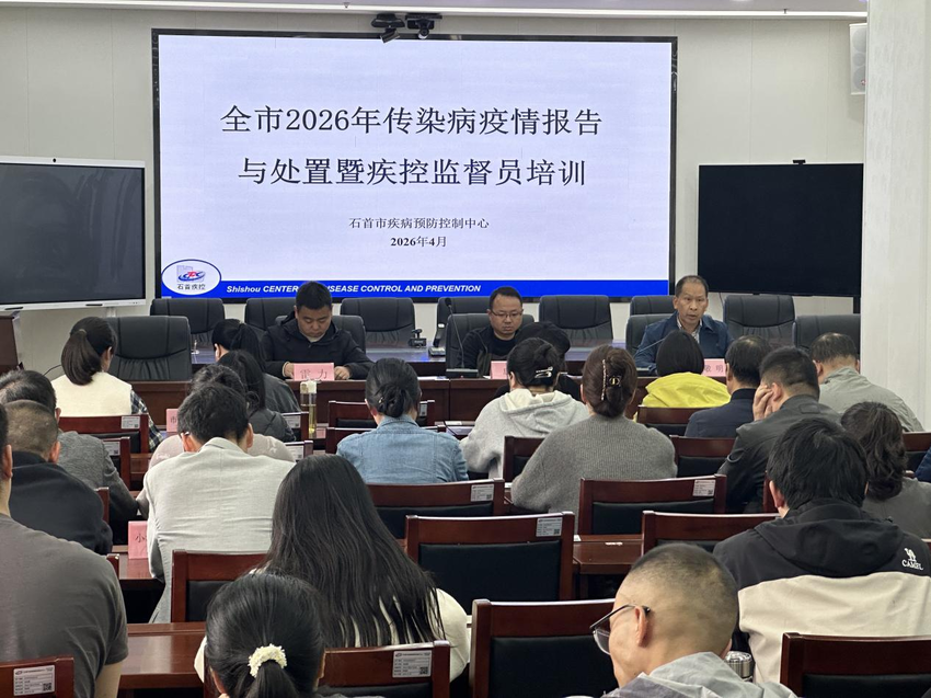 为全面提升全市传染病信息报告质量与突发公共卫生事件应急处置能力,进一步深化医防协同、医防融合机制建设,切实加强医疗机构疾控监督员队伍建设,近日,石首市疾病预防控制中心举办2026年传染病信息报告与处置培训暨疾控监督员培训。各乡镇办区卫生院、社区卫生服务中心、市直医疗单位公共卫生科科长、医务科负责人、疫情信息报告管理员以及市疾控中心疾控监督员等共50余人参加培训。
