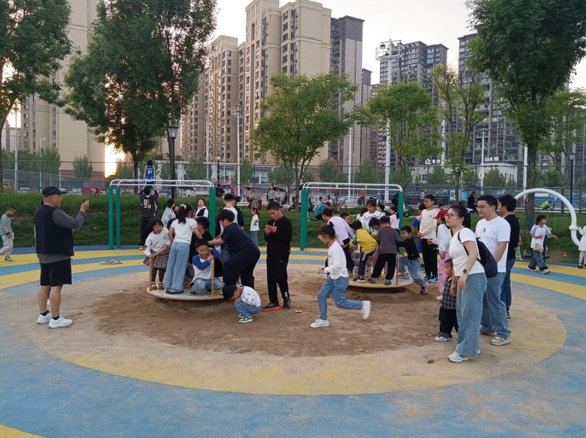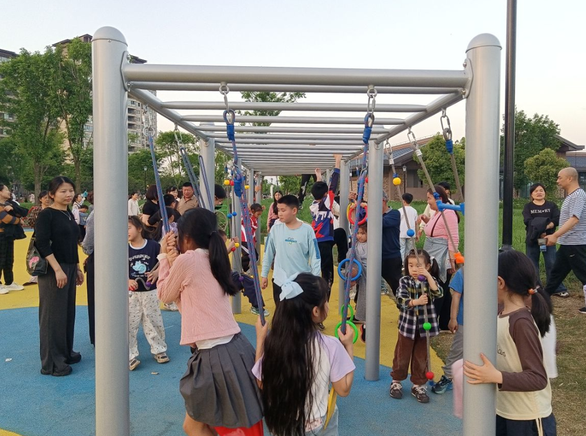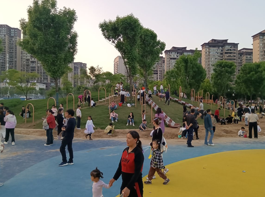 人民公园凭借优美的生态环境和完善的配套设施,满足了全年龄段市民日常休闲需求。周末,儿童游乐区人气旺盛,孩子们玩滑梯、荡秋千、挖沙坑……一张张笑脸在阳光下格外灿烂。家长们或守护在旁,用手机记录孩子们的快乐瞬间;或结伴漫步,尽情享受生态红利带来的幸福生活。