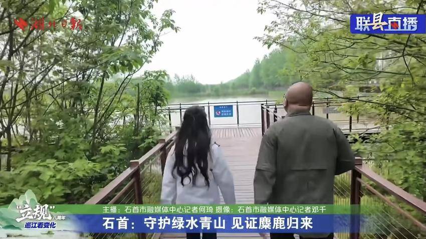近日,湖北日报联合多家县市区融媒体中心共同开展的全媒体巡江直播活动《“立规”八周年巡江看变化》,多维度呈现“立规”八年来长江湖北段的生态蝶变与绿色转型成果。直播最后一站,走进石首麋鹿国家级自然保护区,以镜头为眼、以讲述为笔,向全国网友生动展现石首守护绿水青山、践行长江大保护、推动人与自然和谐共生的生动实践。