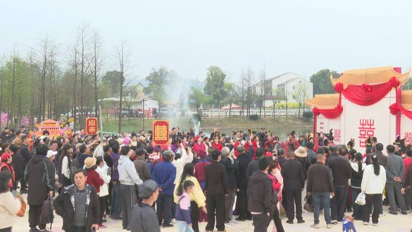桃源小镇以三国历史“刘备迎亲”为文化内核,打造国风实景沉浸之旅。走进景区,游客不再是旁观者,而是迎亲大典的一员。现场可换装汉服,亲身加入迎亲队伍,全程参与这场热闹盛大的三国婚礼。“喜宴”结束后,游客可沿五大主题点位与NPC游戏互动、打卡集章,体验别具一格的剧情任务;还可直奔鹿角峰,邂逅“花神”NPC,赏花、游山、观景、拍照互动,步步皆景,处处有戏。