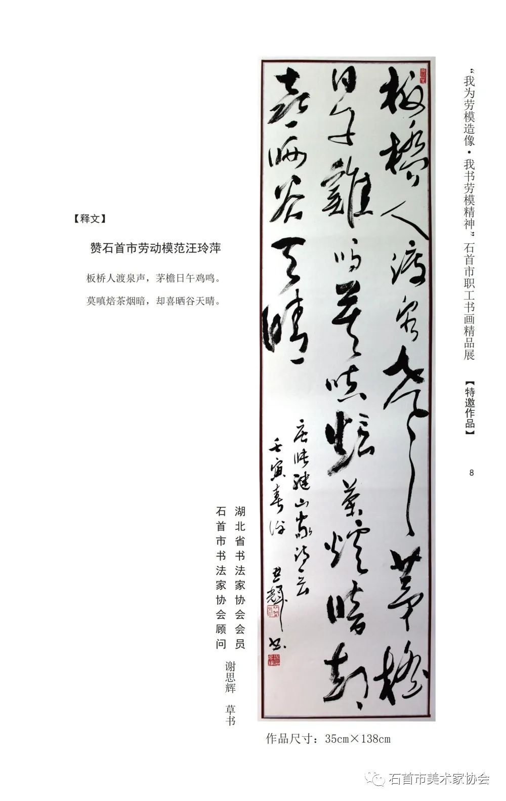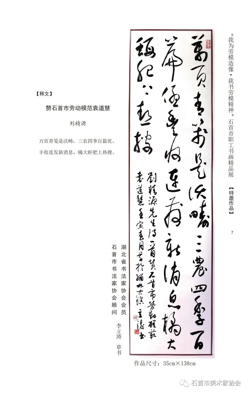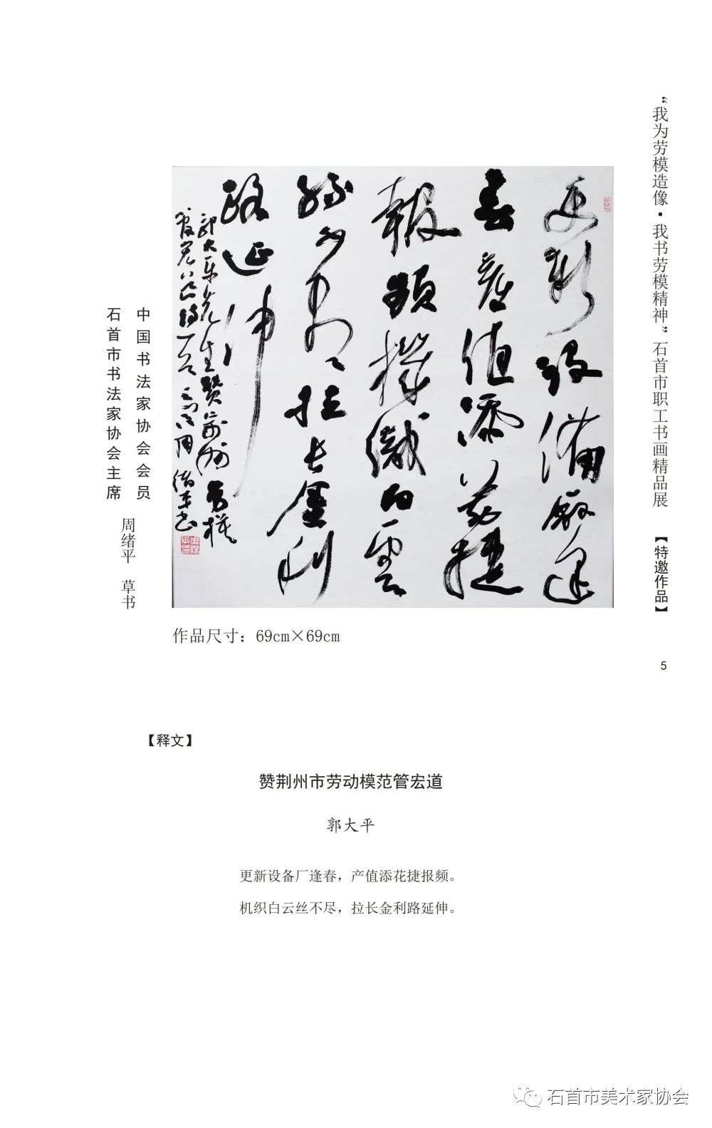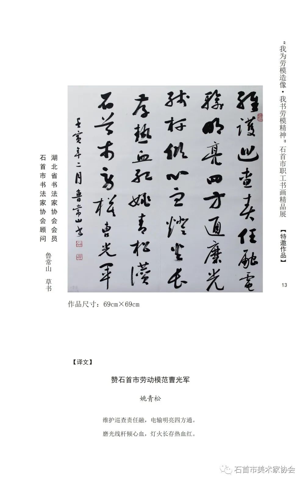 “我为劳模造像 我书劳模精神”石首市首届职工书画作品集